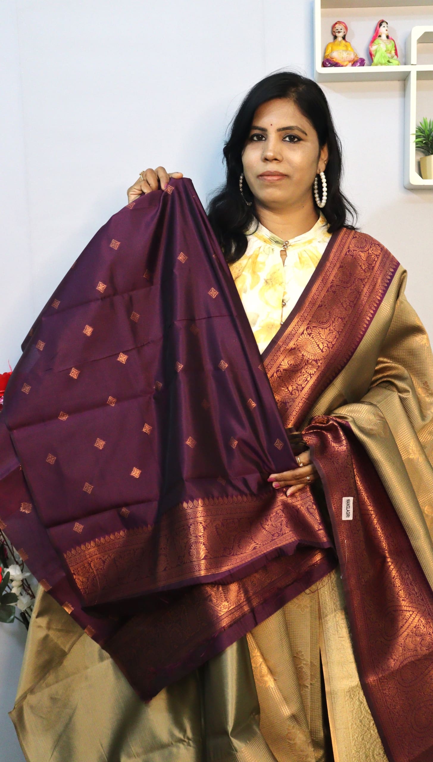 Karan pattu saree having floral butas all over saree. Featuring a rich pallu with kanchi border. Making it perfect for special occasions like festivals or weddings. The rich texture of karan pattu would enhance the entire saree, giving it a luxurious feel.