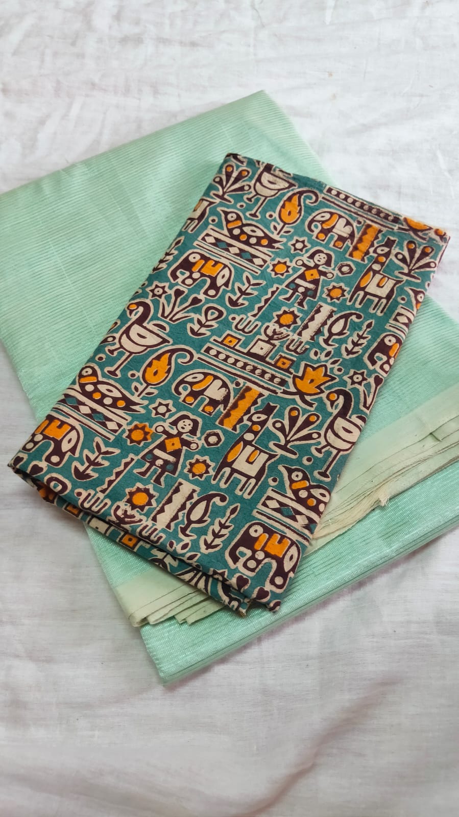 PURE MANGALGIRI HANDLOOM SAREE WITH KALAMKARI BLOUSE